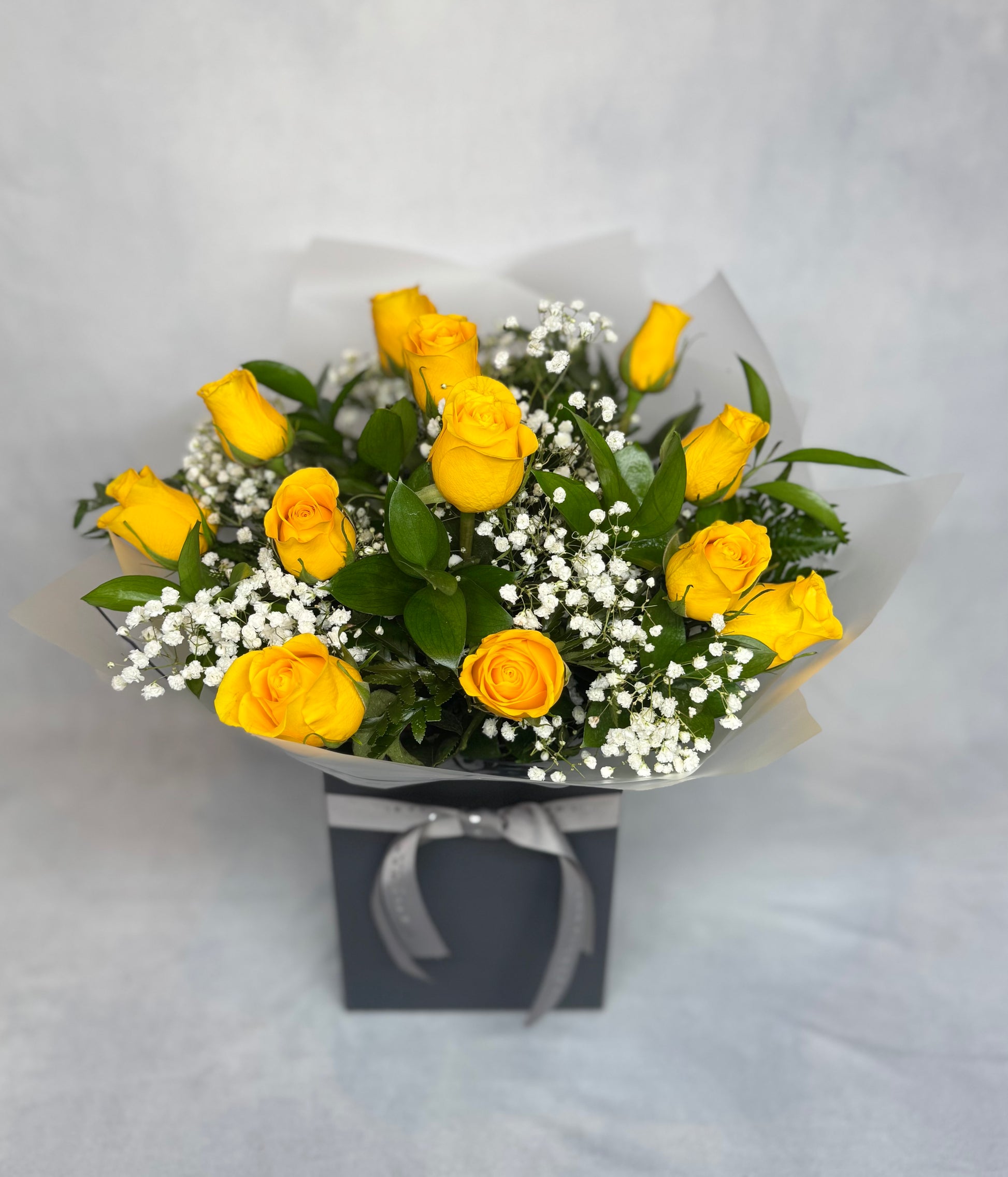 Flower arrangement is delivered upright in a carefully packaged box to ensure stability.