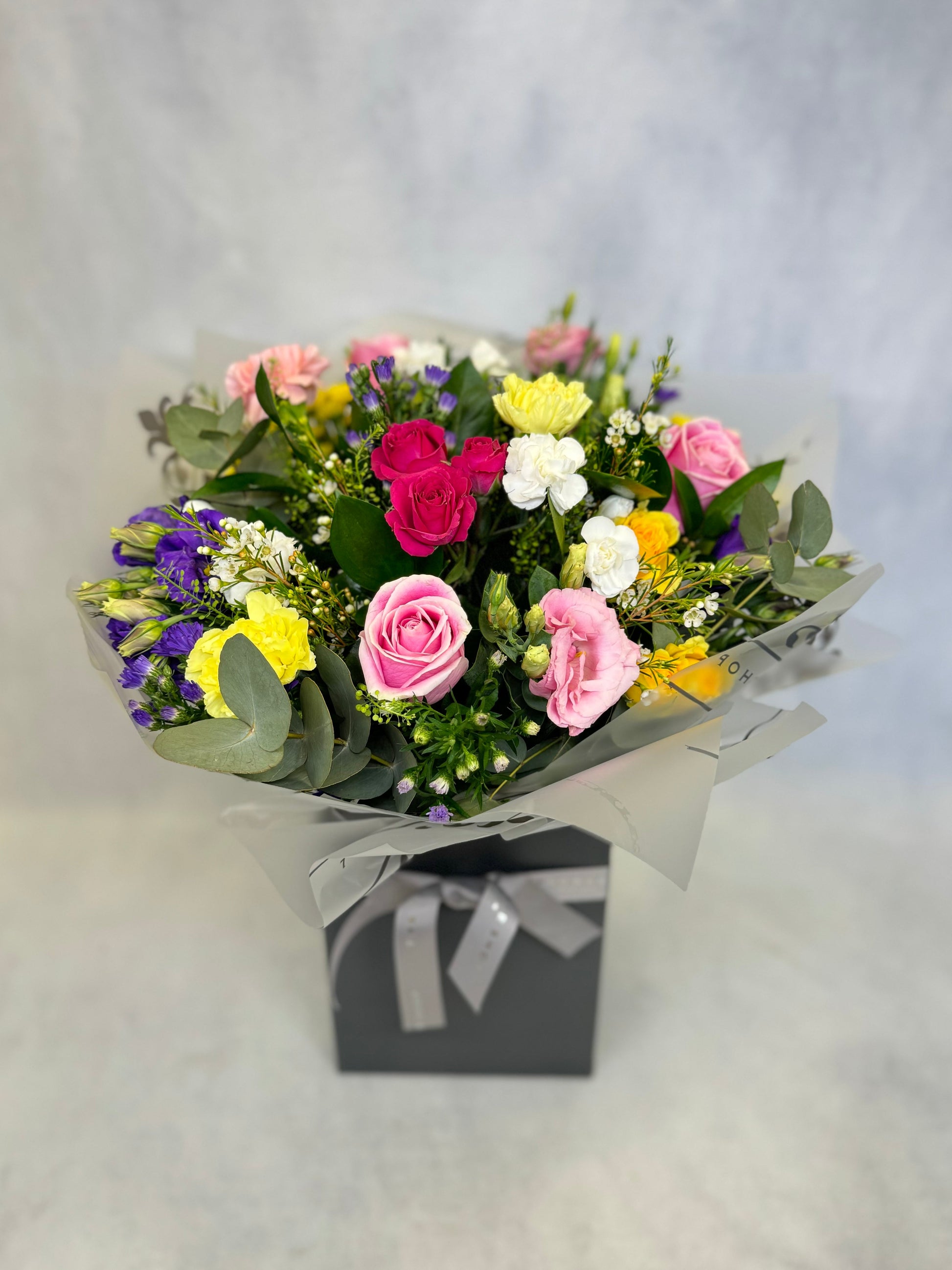 This option will come in a beautiful variety of bright & cheery flowers - styled & arranged by our florists with complimenting colours. Please note that pictures are examples and that flowers and foliage will vary depending on season & availability. However value will always be the same if not more than the item displayed.